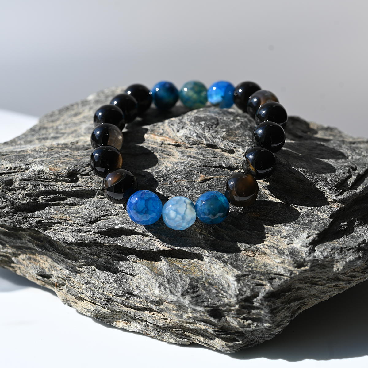 Ordinær pris 449,00 NOKSalg pris 449,00 NOK Ordinær pris 399,00 NOKEnhetspris / perArmbånd med 10 mm svarte agatperler med ghost-aktig uttrykk og blå drage-agat. Den mørke, transparente gløden møter den livlige blå strukturen – en kontrast som skaper...