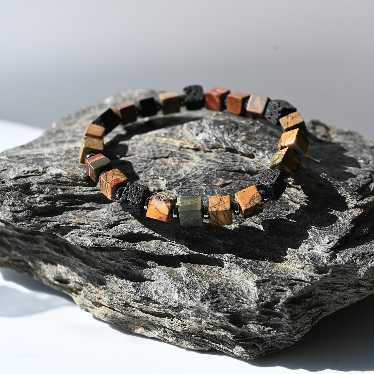 Ordinær pris 315,00 NOKSalg pris 315,00 NOK Ordinær pris 299,00 NOKEnhetspris / perArmbånd laget av map stone (ca. 8–10 mm) og lavastein. En balansert kombinasjon av unike mønstre og jordnær styrke – komfortabelt tredd på elastisk strikk.